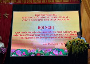 Thực hiện phối hợp tổ chức Hội nghị tuyên truyền Đề án “ Giảm thiểu tình trạng tảo hôn và hôn nhân cận huyết thống trong vùng DTTS gia đoạn 2021 – 2025” (giai đoạn II) năm 2025 gồm các Sở Tư pháp, Sở Nội vụ, Chi cục Dân số tỉnh, UBND Lang Chánh do Sở Dân tộc và tôn giáo chủ trì đến người dân trên địa bàn xã Yên Khương, huyện Lang Chánh.