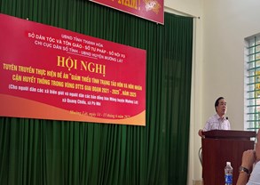 Thực hiện phối hợp tổ chức Hội nghị tuyên truyền Đề án “ Giảm thiểu tình trạng tảo hôn và hôn nhân cận huyết thống trong vùng DTTS giai đoạn 2021 – 2025” (giai đoạn II) năm 2025 gồm các Sở Tư pháp, Sở Nội vụ, Chi cục Dân số tỉnh do Sở Dân tộc và tôn giáo chủ trì triển khai đến người dân trên địa bàn các xã Tam Chung; Trung Lý; Quang Chiểu; Pù Nhi, huyện Mường Lát.