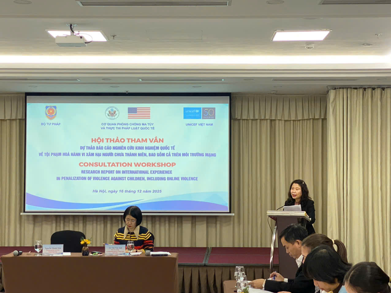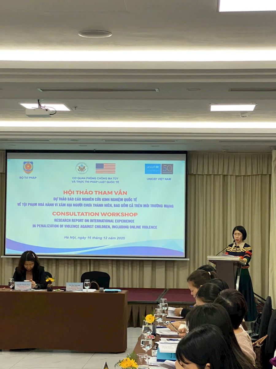 Đây là Hội thảo có ý nghĩa quan trọng với sự phối hợp chung của UNICEF và Bộ Tư pháp theo chương trình hợp tác chung của hai tổ chức. Báo cáo đã đánh giá pháp luật quốc gia và các văn bản dưới luật liên quan đến bạo lực đối với người chưa thành niên để tuân thủ các tiêu chuẩn quốc tế, xác định điểm mạnh và lỗ hổng cũng như đề xuất các khuyến nghị về tăng cường luật hình sự liên quan đến bạo lực đối với người chưa thành niên nhằm hoàn thiện nghiên cứu kinh nghiệm quốc tế về tội phạm hóa hành vi xâm hại đối với người chưa thành niên, bao gồm cả những hành vi xâm hại trẻ em trên môi trường mạng - Đề xuất hoàn thiện pháp luật Việt Nam.