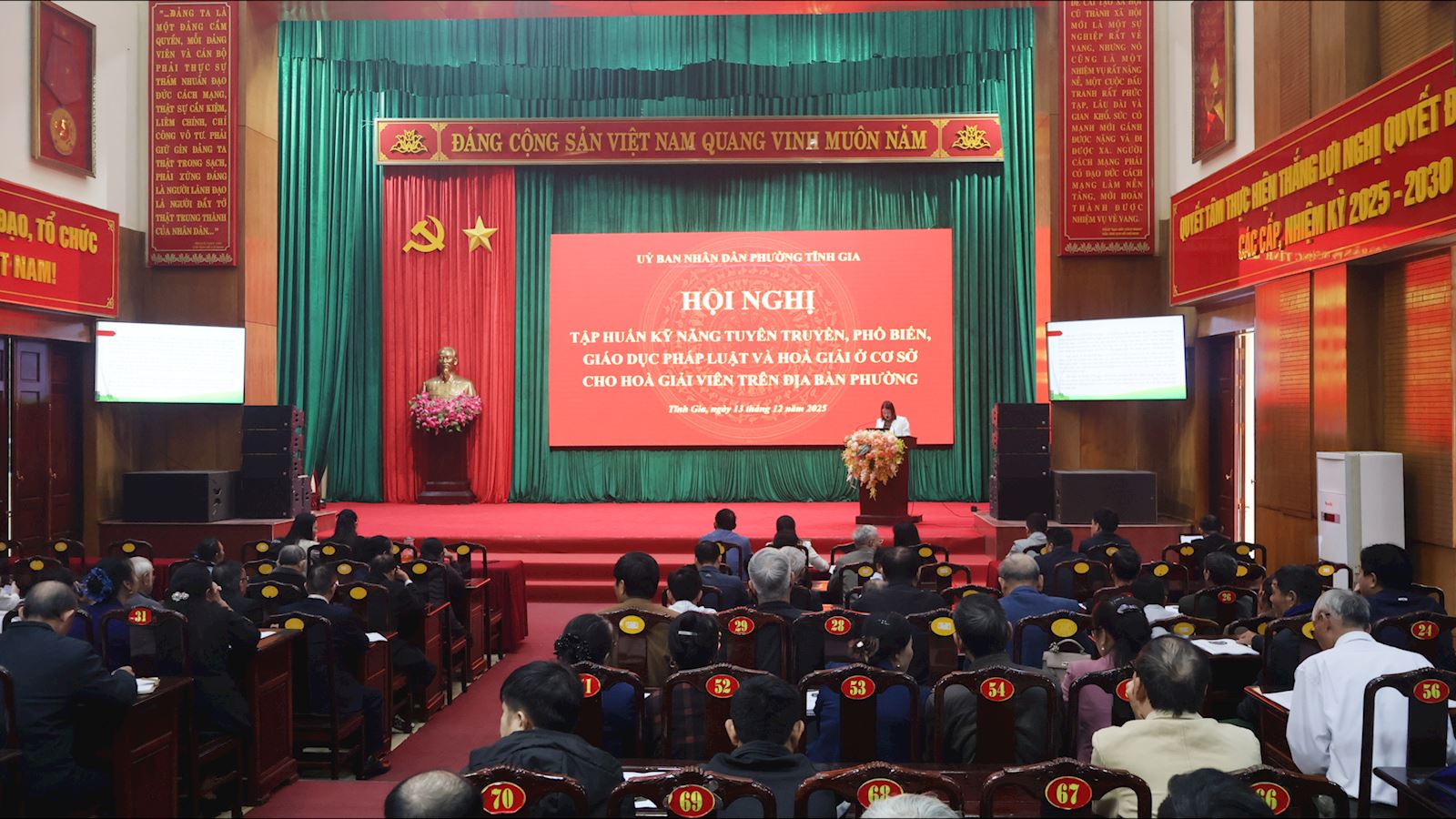 Tham dự hội nghị có đồng chí Hoàng Thị Nam, Uỷ viên Ban Thường vụ Đảng uỷ, Phó Chủ tịch HĐND phường; đồng chí Nguyễn Thị Hà, Ủy viên Ban Chấp hành Đảng bộ, Phó Chủ tịch UBND phường; đại diện lãnh đạo, công chức các phòng, đơn vị liên quan; trưởng các đoàn thể phường; các đồng chí thành viên tuyên truyền viên pháp luật; các đồng chí Ban Thanh tra Nhân dân, Trưởng ban giám sát cộng đồng; Trưởng ban công tác mặt trận tại các tổ dân phố; tổ trưởng và các hòa giải viên tổ hòa giải.