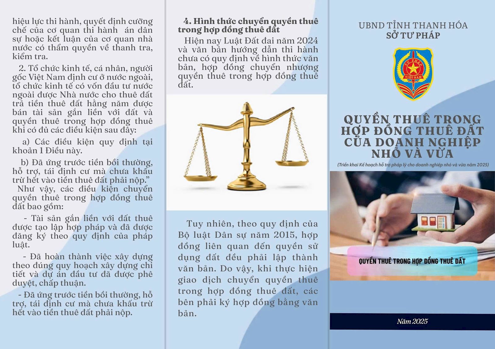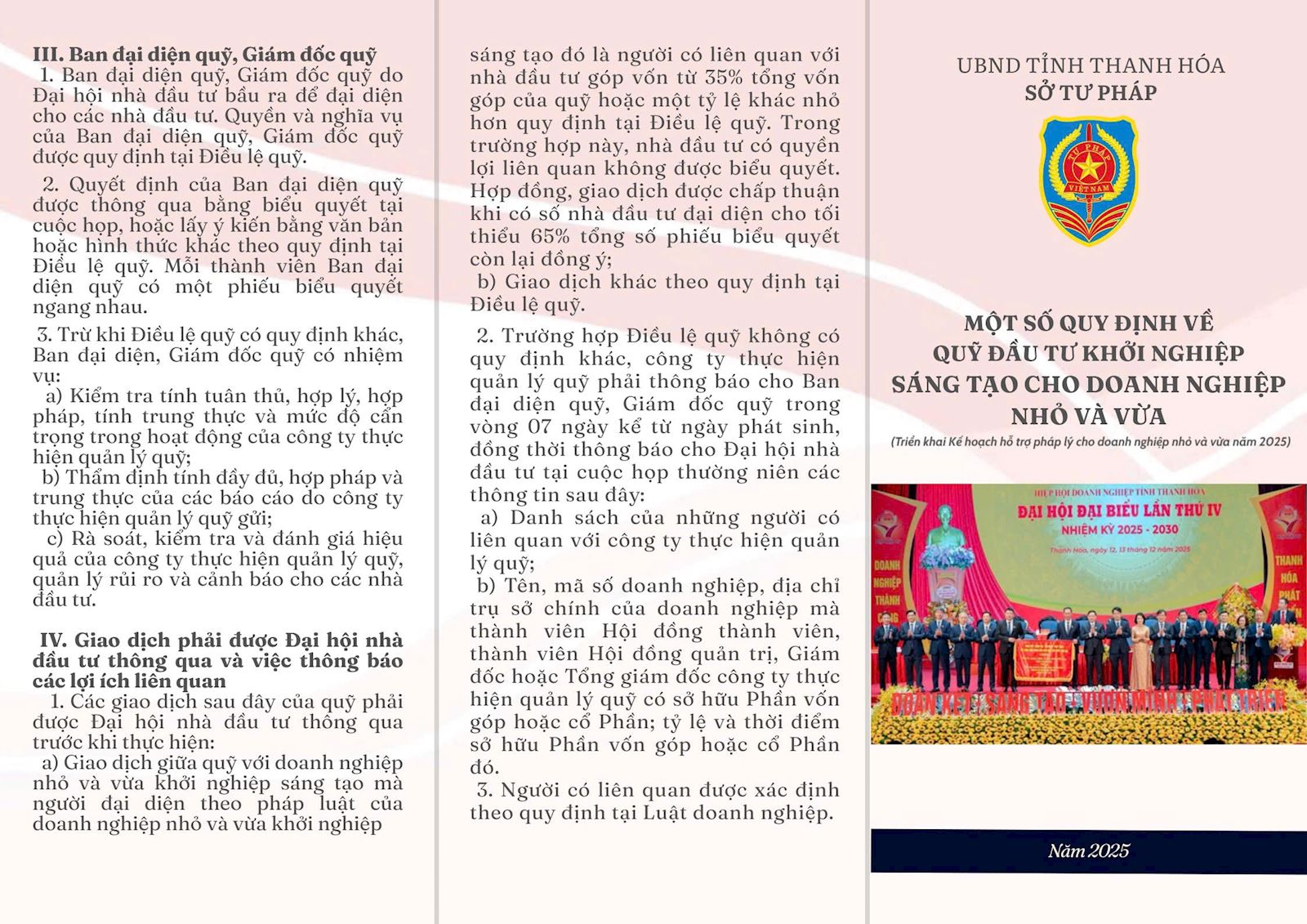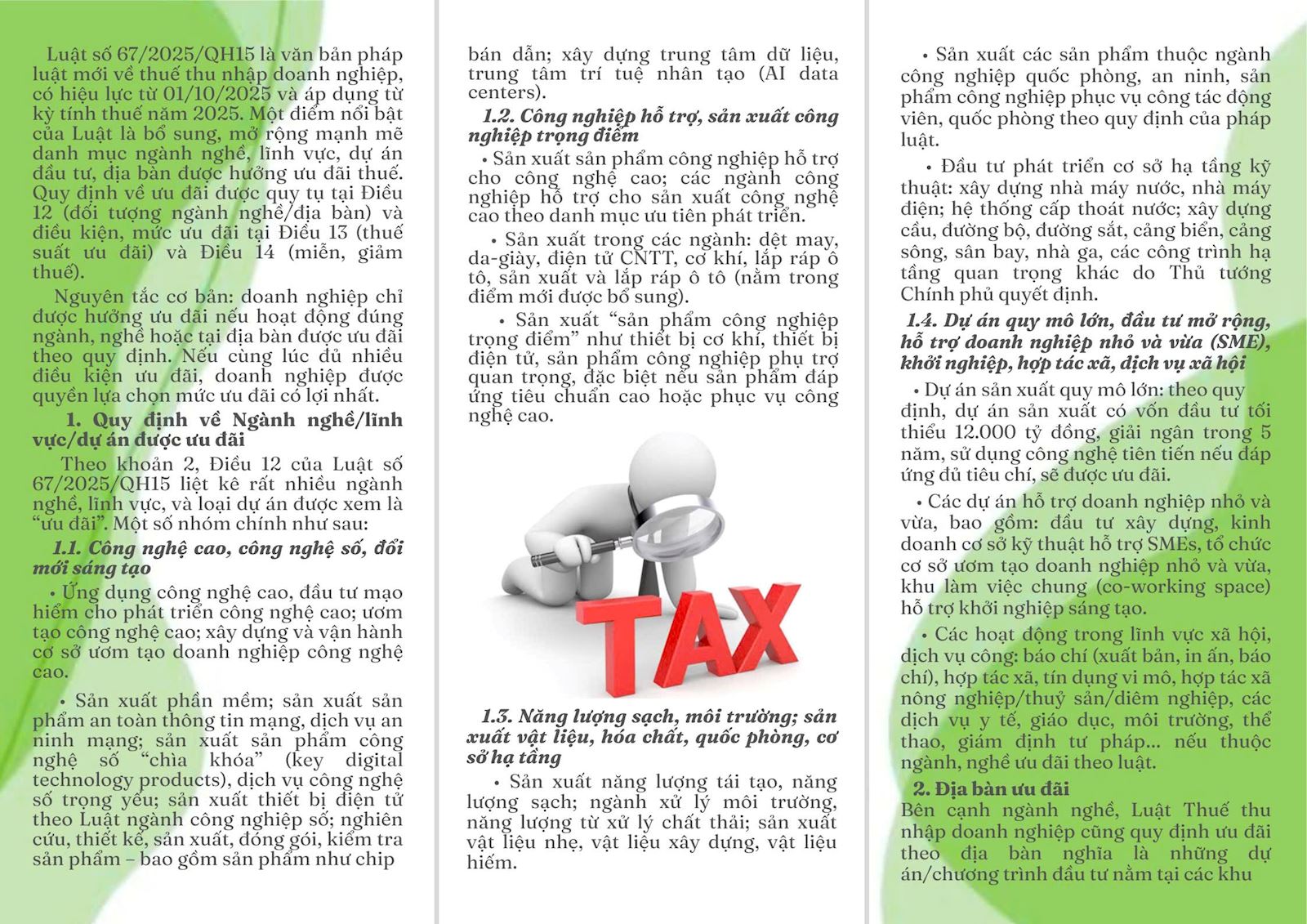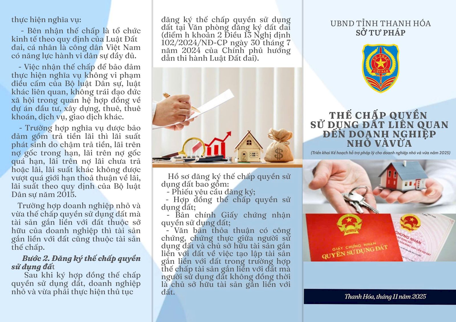 Thực hiện Kế hoạch số 492/KH-STP ngày 28/7/2025 về hỗ trợ pháp lý cho doanh nghiệp nhỏ và vừa trên địa bàn tỉnh năm 2025 , Sở Tư pháp đã biên soạn Tờ gấp liên quan đến doanh nghiệp. Nội dung Tờ gấp liên quan đến các lĩnh vực: Lao động, Đất đai, Đầu tư, Thuế thu nhập doanh nghệp. Hy vọng những nội dung này sẽ mang lại kiến thức pháp luật bổ ích cho doanh nghiệp trong gian tới.