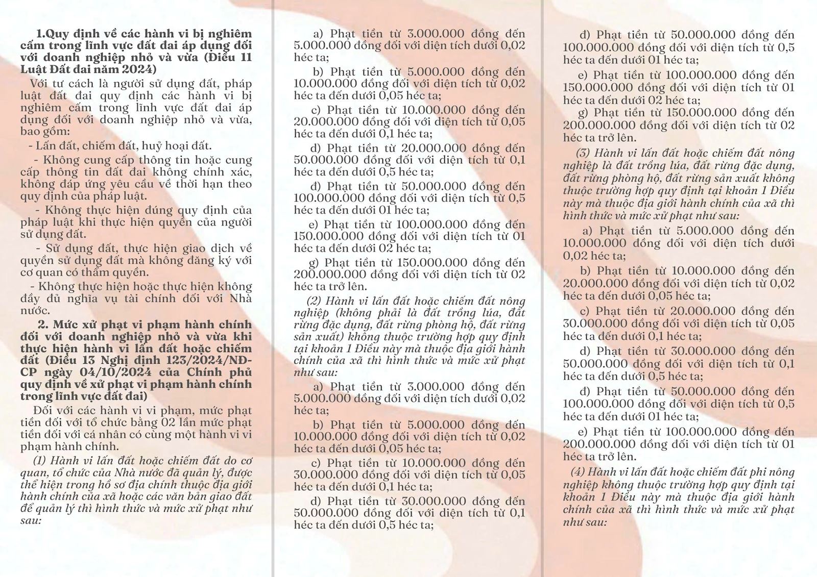 Hành vi bị nghiêm cấm trong lĩnh vực đất đai áp dụng đối với doanh nghiệp nhỏ và vừa