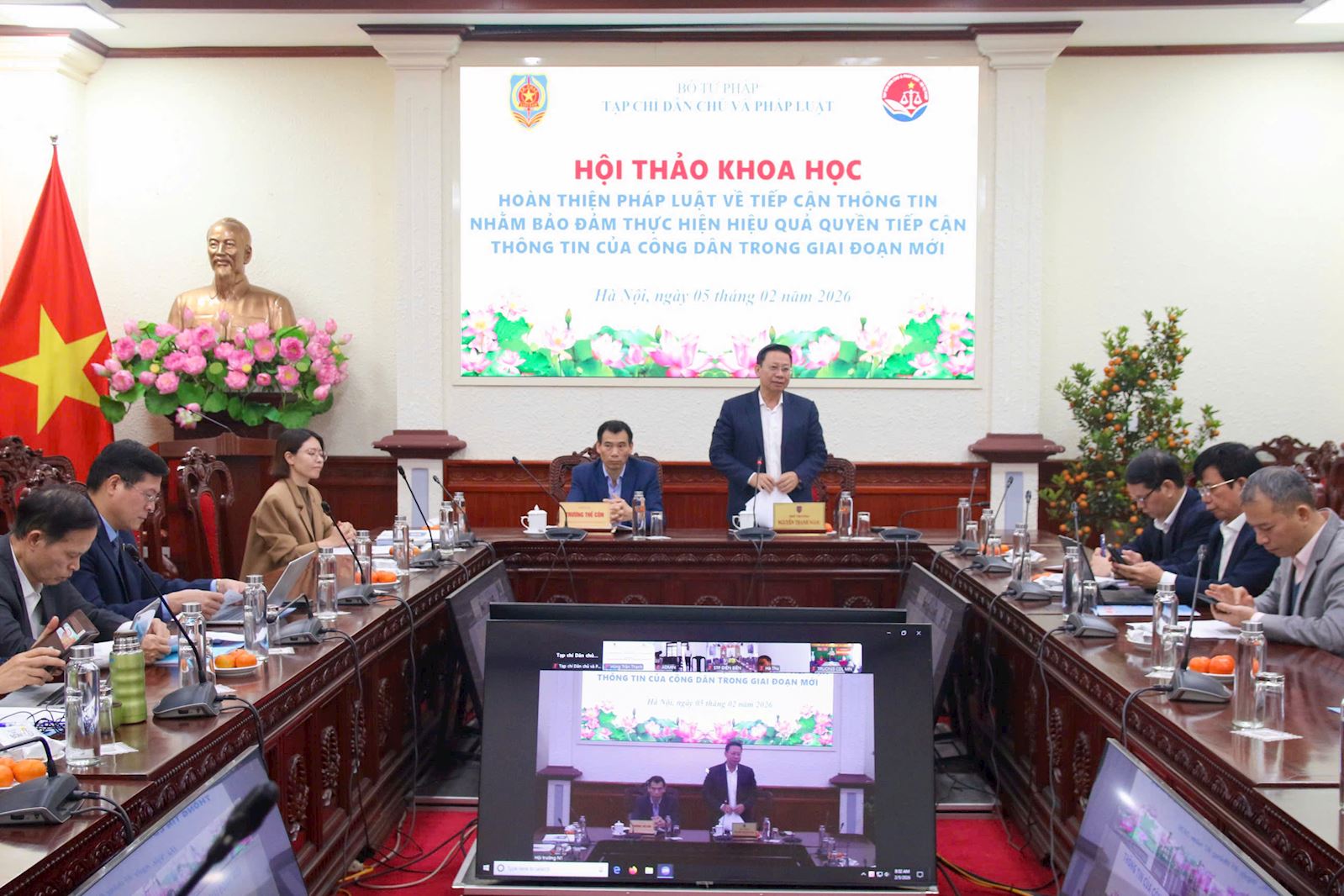 Hội thảo tổ chức bằng hình thức trực tiếp kết hợp trực tuyến với sự tham gia của đại diện Lãnh đạo một số bộ, ngành; một số đại biểu Quốc hội; đại diện Văn phòng Quốc hội, Văn phòng Chính phủ, Ủy ban Trung ương Mặt trận Tổ quốc Việt Nam; đại diện lãnh đạo các đơn vị thuộc Bộ Tư pháp; tổ chức pháp chế các bộ, cơ quan ngang bộ, cơ quan thuộc Chính phủ; đại diện Hội đồng nhân dân, Ủy ban nhân dân các cấp, Sở Tư pháp các tỉnh, thành phố trực thuộc Trung ương; đại diện các cơ quan, tổ chức như Thuế, Viện kiểm sát, Công an, Kho bạc, Ngân hàng, Quỹ tài chính, Luật sư, Đấu giá, Thẩm định giá; các chuyên gia, nhà khoa học, các cơ sở đào tạo, viện nghiên cứu... nhằm nhận diện những vướng mắc, đánh giá kết quả đạt được và kiến nghị giải pháp hoàn thiện thể chế, pháp luật về tiếp cận thông tin, góp phần đáp ứng yêu cầu phát triển đất nước trong “kỷ nguyên mới”.